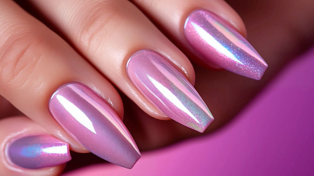 مدل لاک هولوگرامی صورتی شاین؛ انتخابی شیک برای مهمانیها
